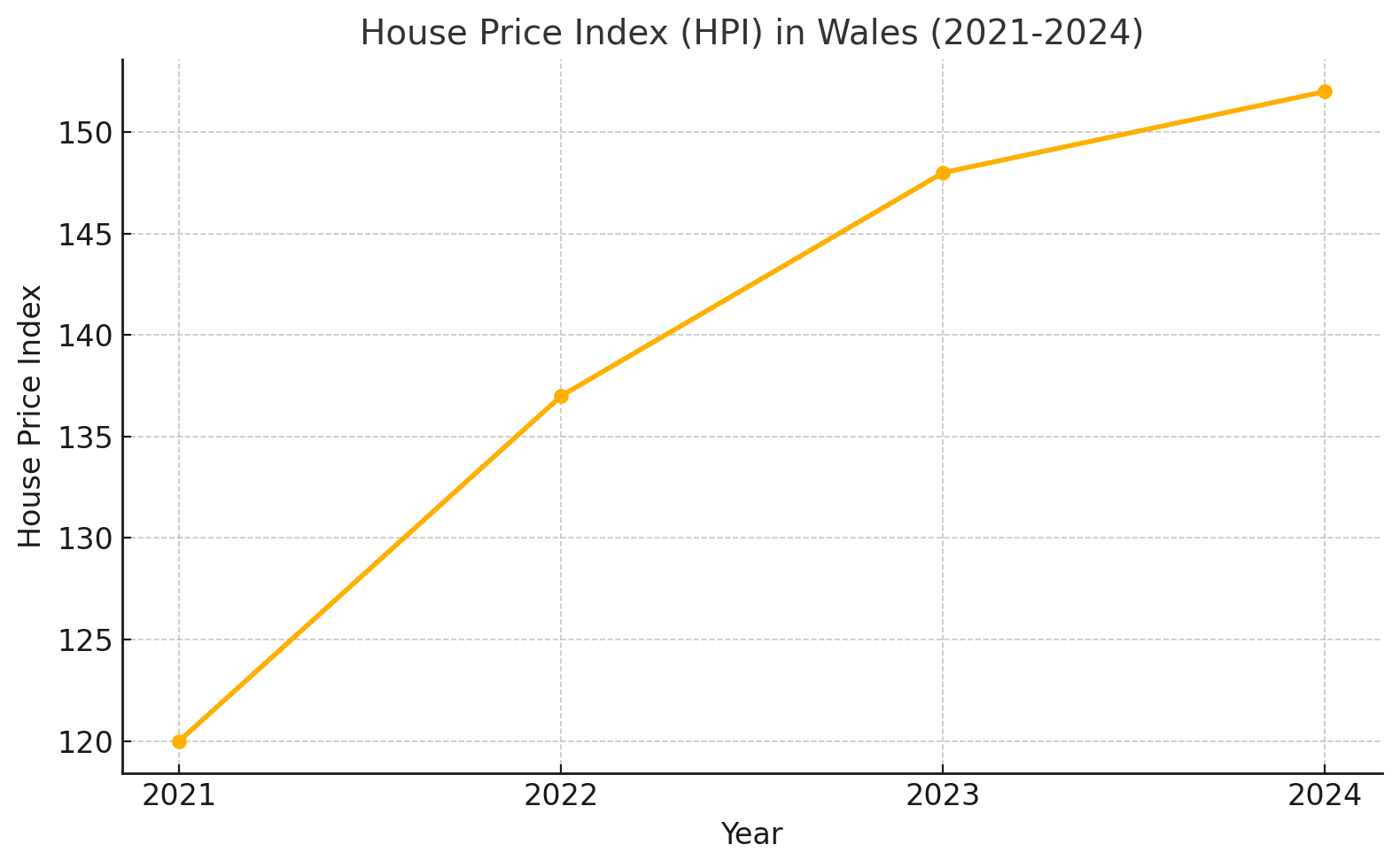 Here is the graph showing the House Price Index (HPI) in Wales from 2021 to 2024: