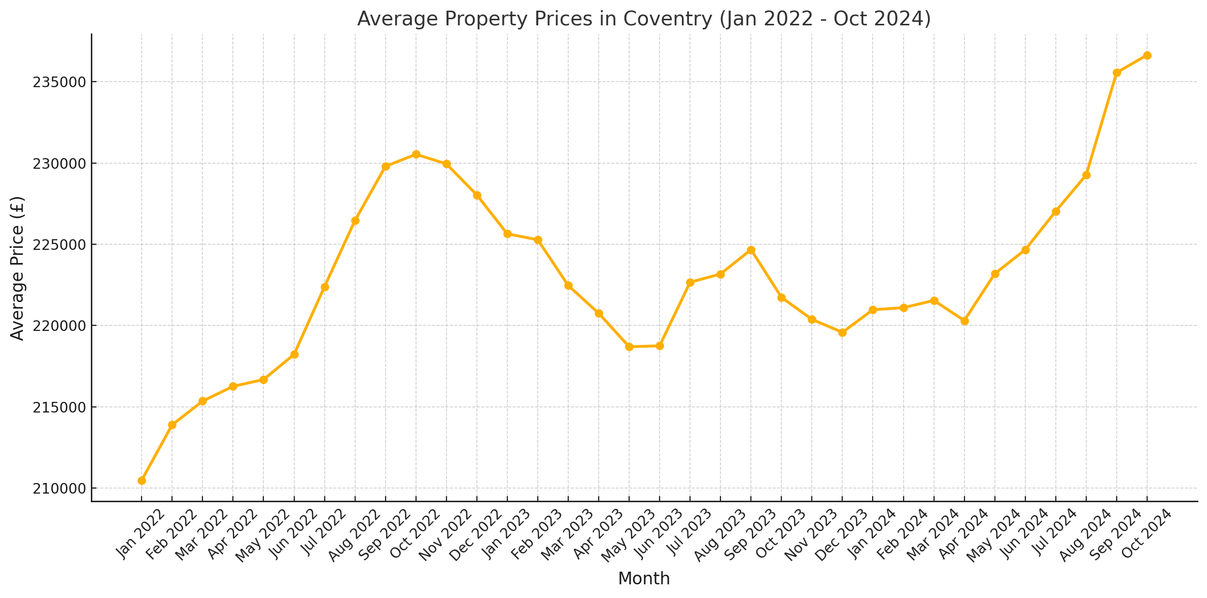 Here is the line graph showing the average property prices in Coventry from January 2022 to October 2024: